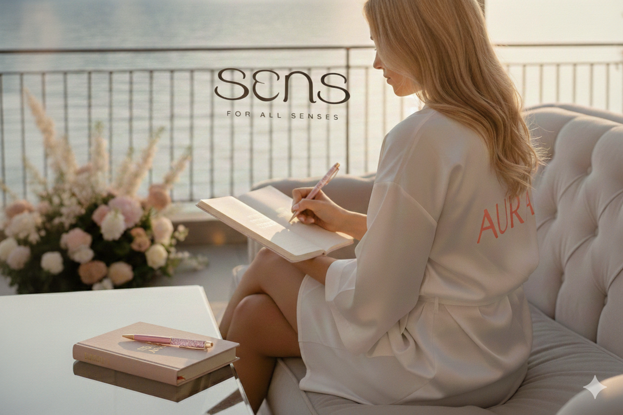 Das AURA Journal ist dein Raum für Klarheit, Kreativität und feminine Selbstverbindung. Im ästhetischem Design und einem passenden AURA-Kugelschreiber begleitet es dich durch deine täglichen Gedanken, Visionen und Rituale. Ein stiller, kraftvoller Moment nur für dich – zum Schreiben, Fühlen und Manifestieren.